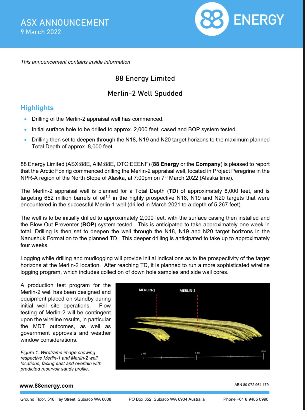 88 Energy Ltd Otcmkts Eeenf Heats Up As Oil Operator Sets March 7 For Merlin 2 Spud Date Executes Binding Spa For The Acquisition Of Producing Permian Basin Oil And Gas Production